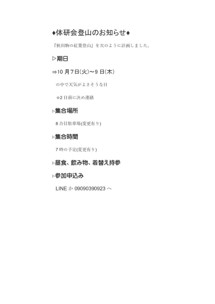 体研会「登山のお知らせ」